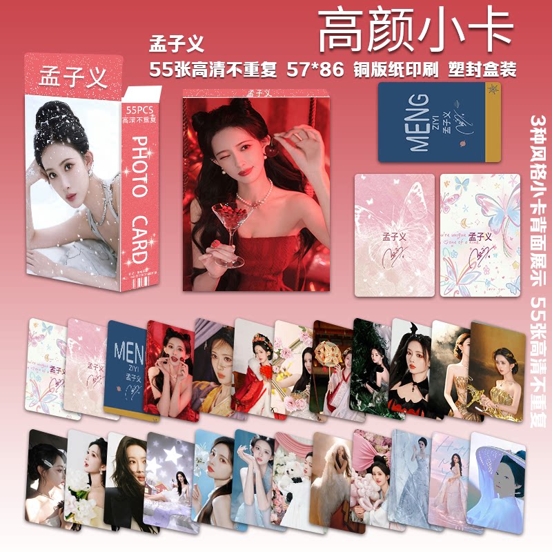 孟子义小卡 55 张不重复 三寸高清铜版印刷 明星周边收藏卡