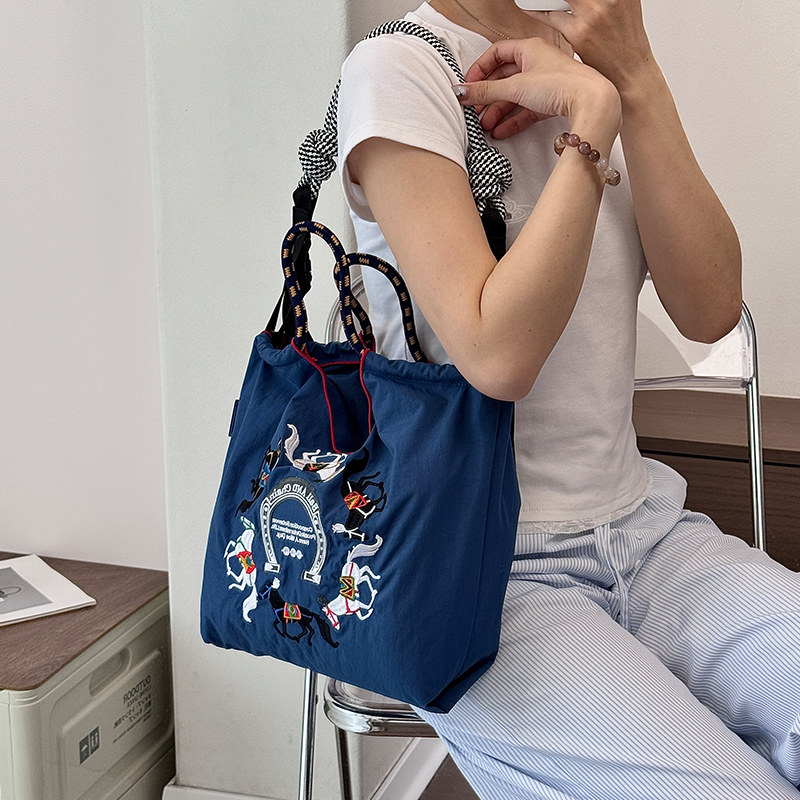 刺绣托特包送可斜挎手提包时尚百搭帆布包尼龙紫色单肩通勤防水