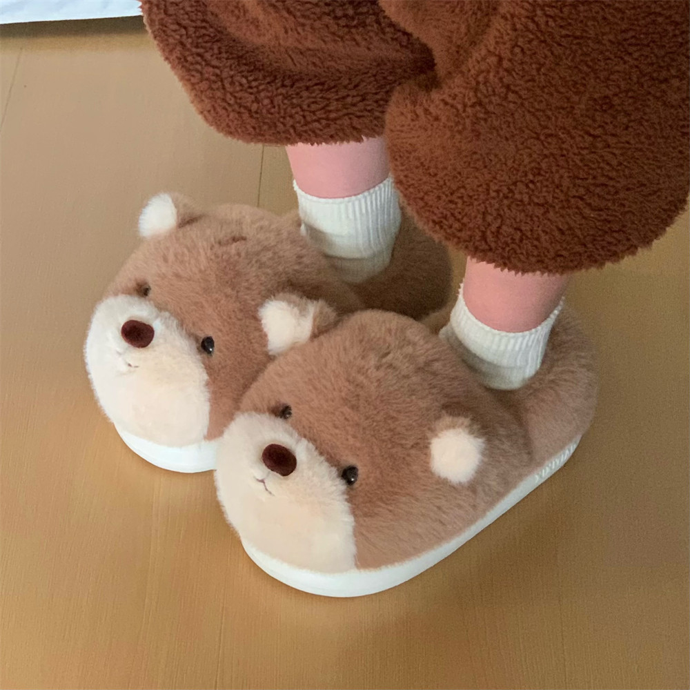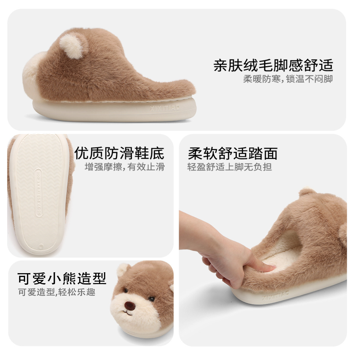 细细条 男女士情侣软萌小熊棉拖鞋保暖包跟防滑毛绒绒家居鞋冬季