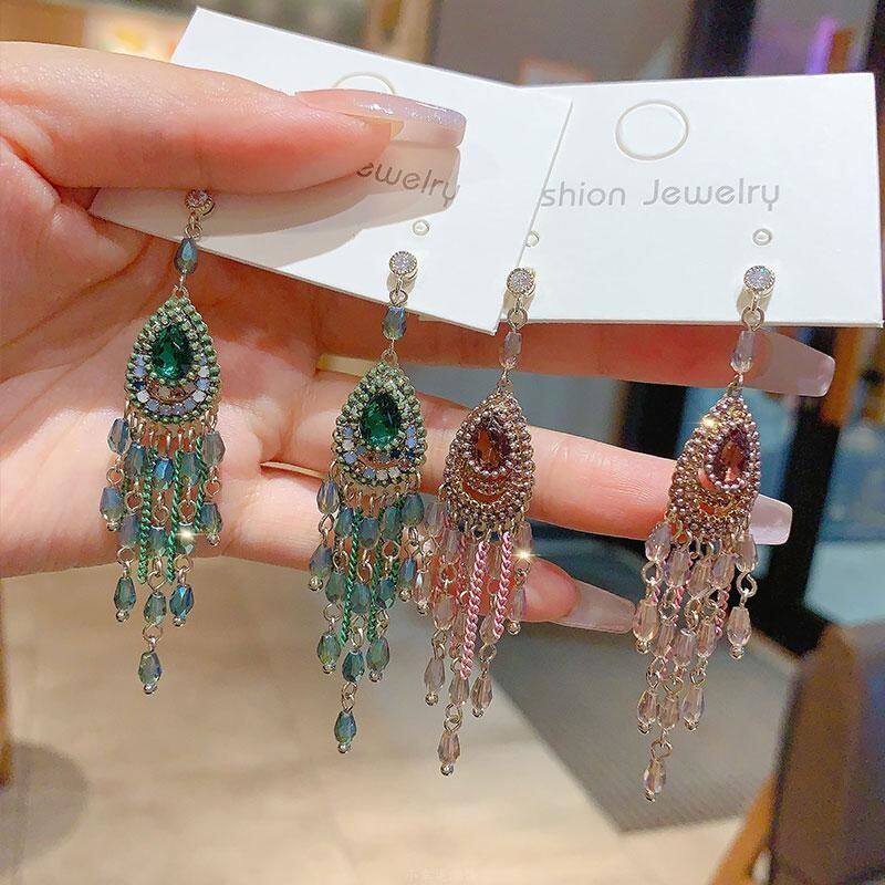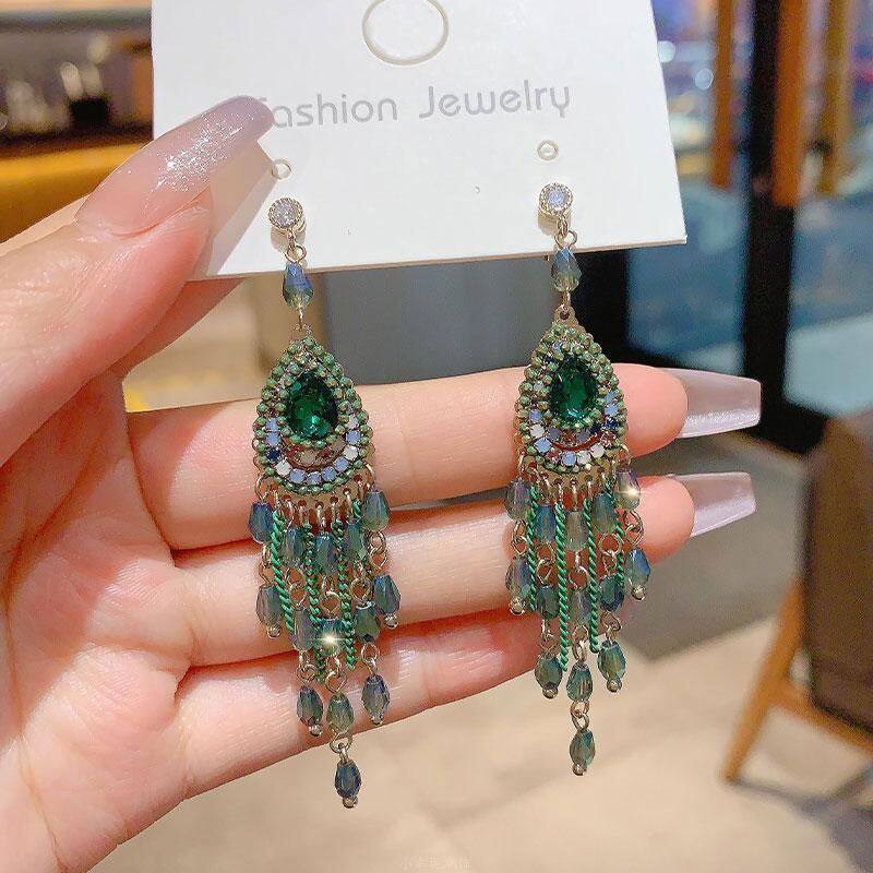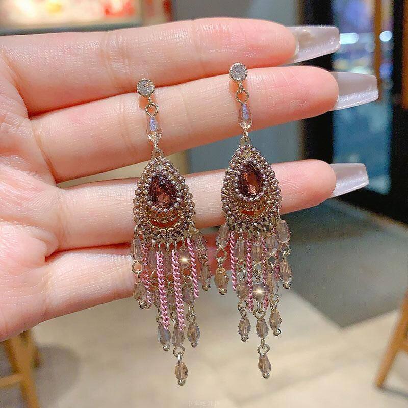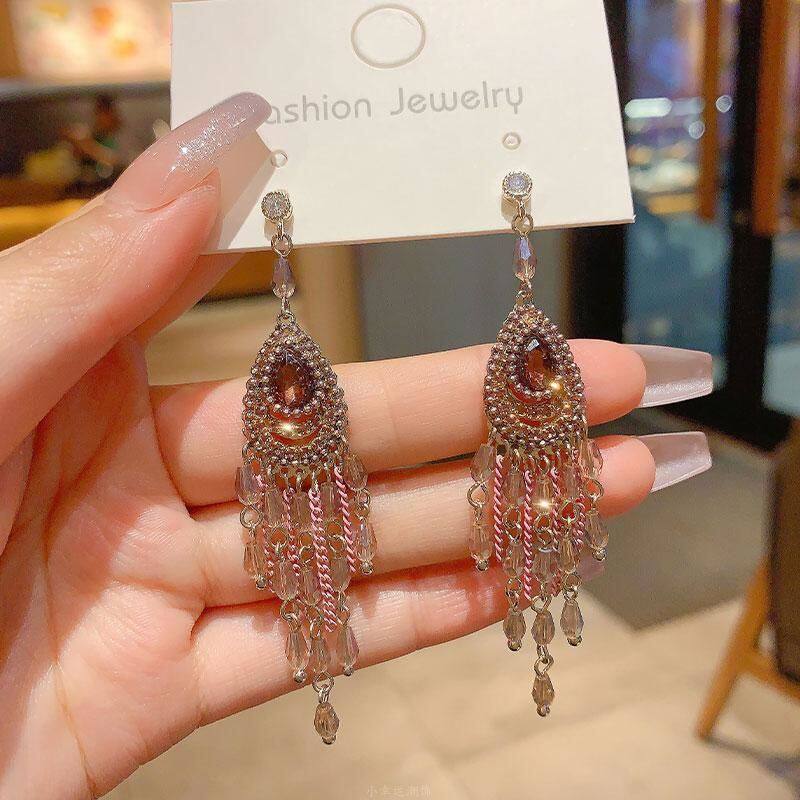 高级感复古轻奢流苏气质长款大耳环新中式民族风镶钻夸张耳饰