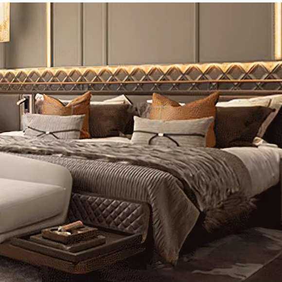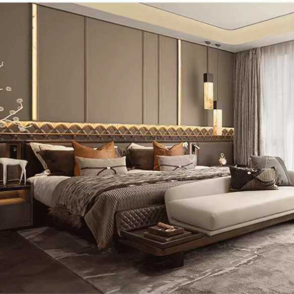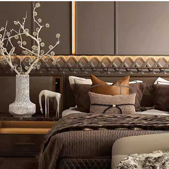 别墅样板房棕色床品简约轻奢橙色皮艺高端展厅床上用品四12件套