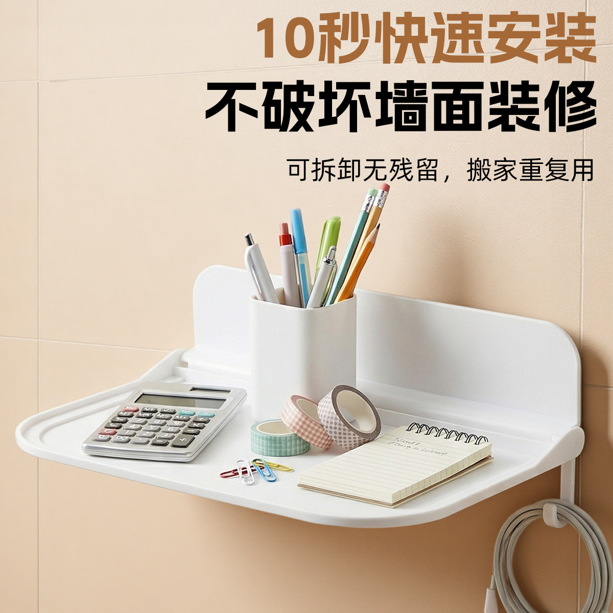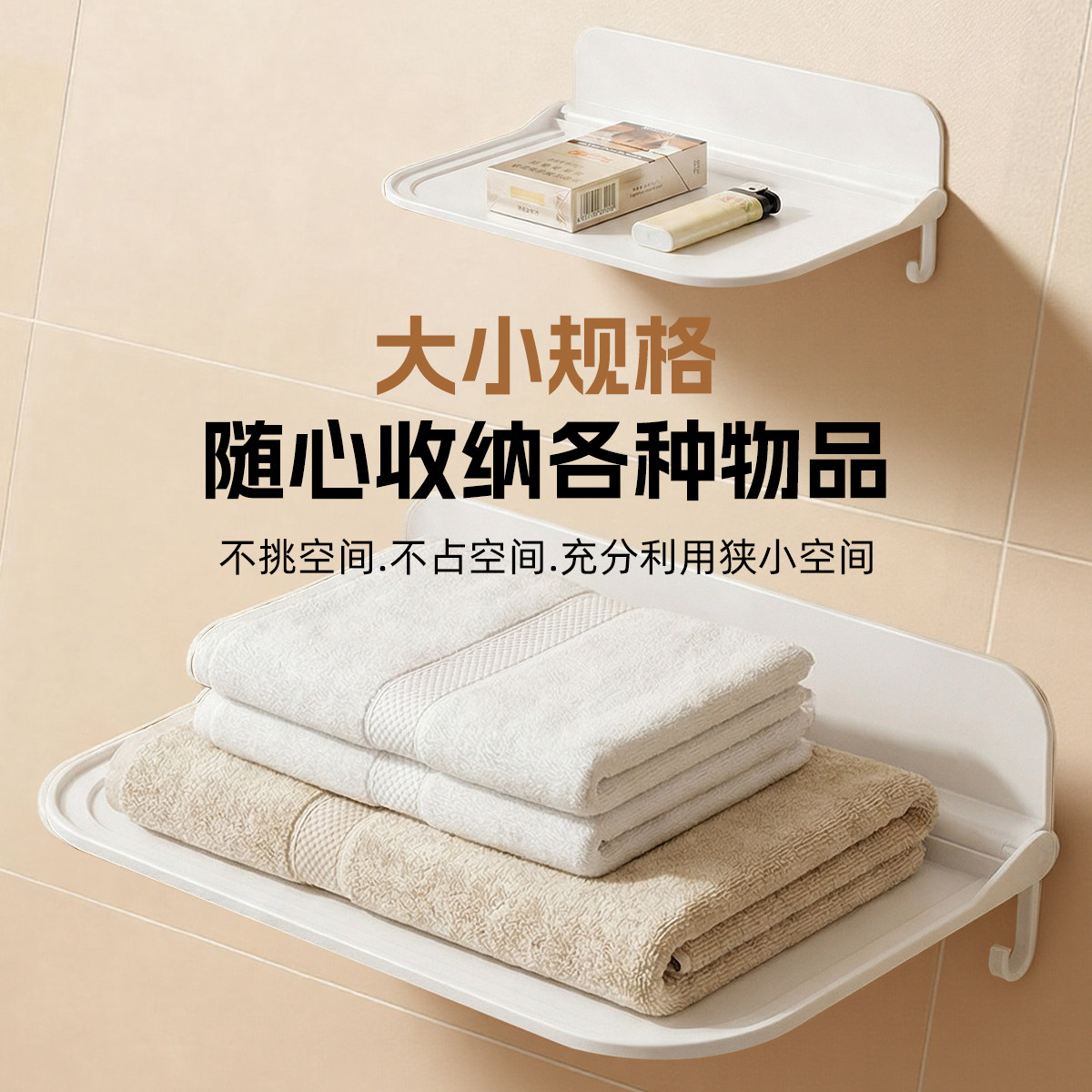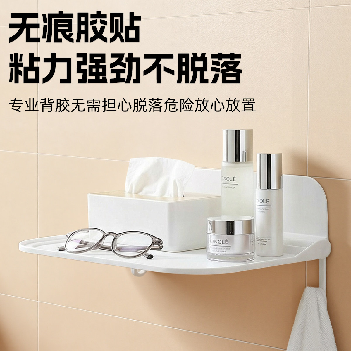 可折叠墙上置物架卫生间厕所手机收纳宿舍床头免打孔托盘机顶盒架