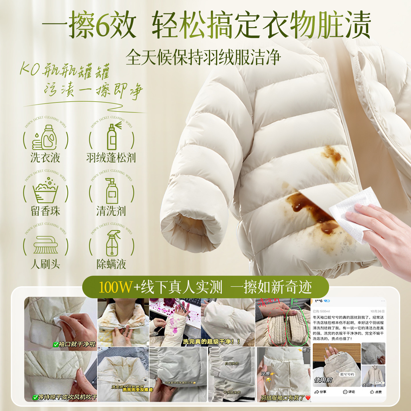 羽绒服免洗清洁湿巾强力去污渍便携应急不伤衣不留痕冬季去污神器