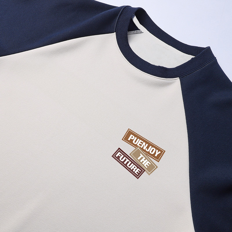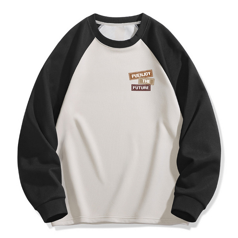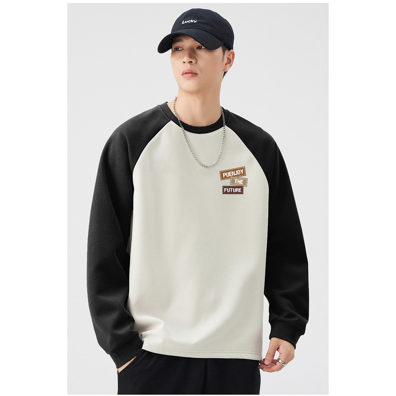 LR真维斯男装撞色圆领插肩袖长袖T恤2025秋季新品男士休闲上衣潮