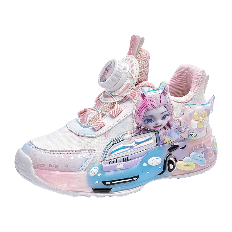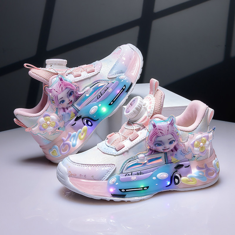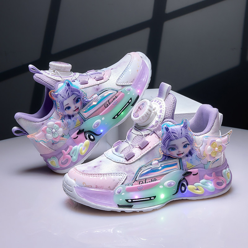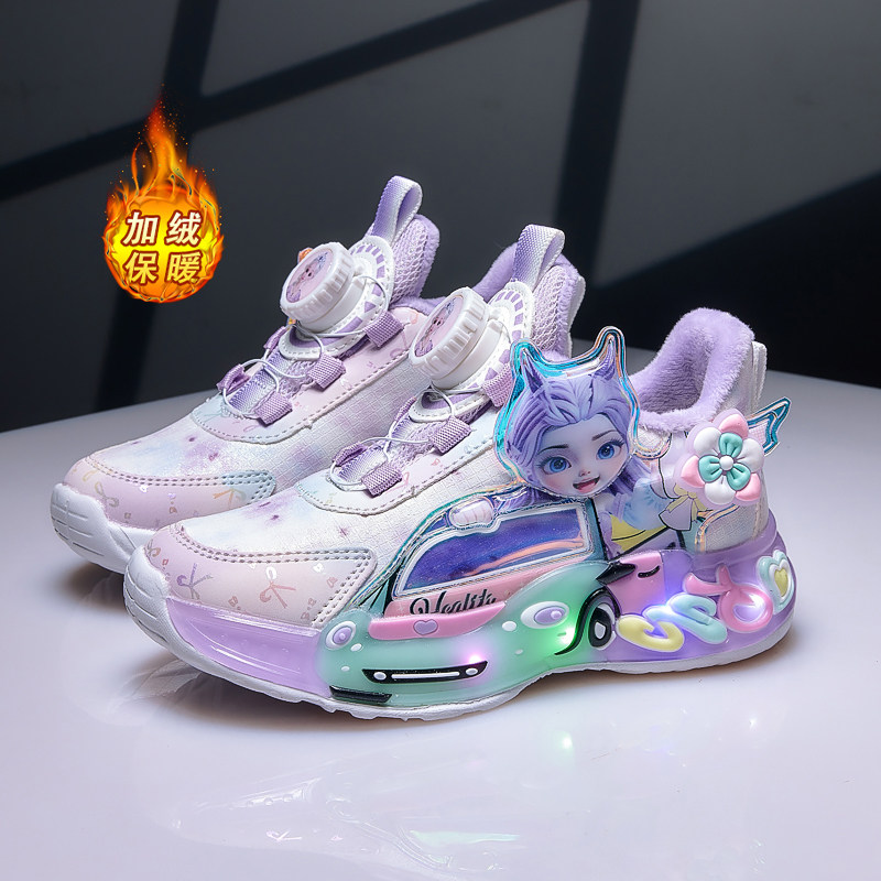 冬季公主发光皮面运动鞋带灯加绒女童新款鞋子秋季女宝宝儿童亮灯