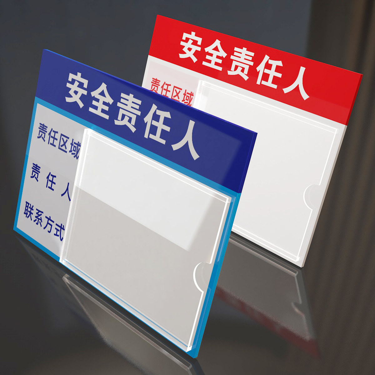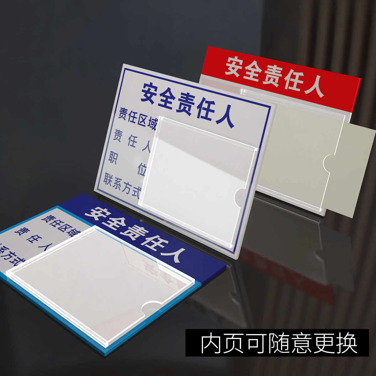 亚克力插卡式消防安全废物仓库卫生区域区负责人岗位责任牌6S管理责任标识牌生产设备管理牌带卡槽信息公示牌