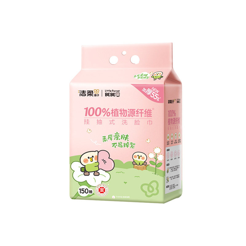 洁柔一次性洗脸巾壁挂式擦脸巾小鹦鹉联名款家用洁面150抽洗脸巾