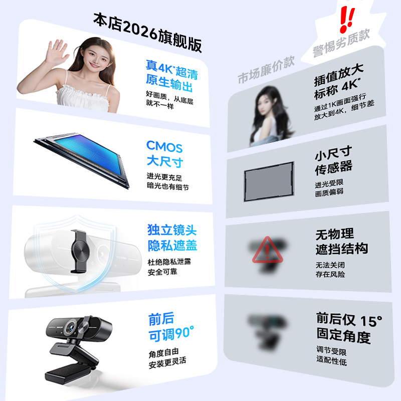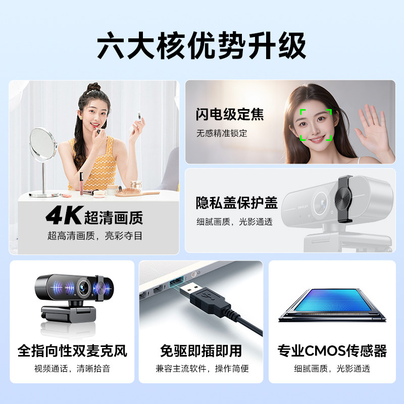 4K超清电脑摄像头网课会议一体家用台式笔记本USB免驱动即插即用