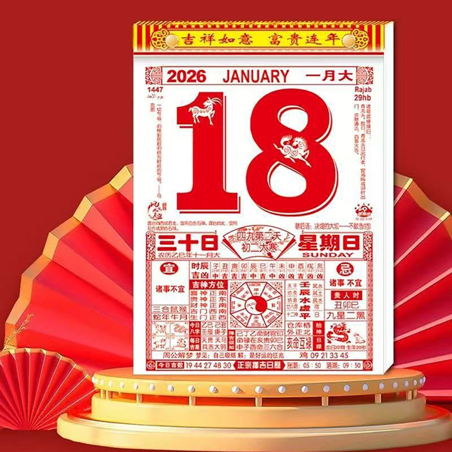 日历2026年新款老黄历马年手撕一天一页老式大号挂历黄道吉日台历高档手撕台历万年历撕历小号加厚台历