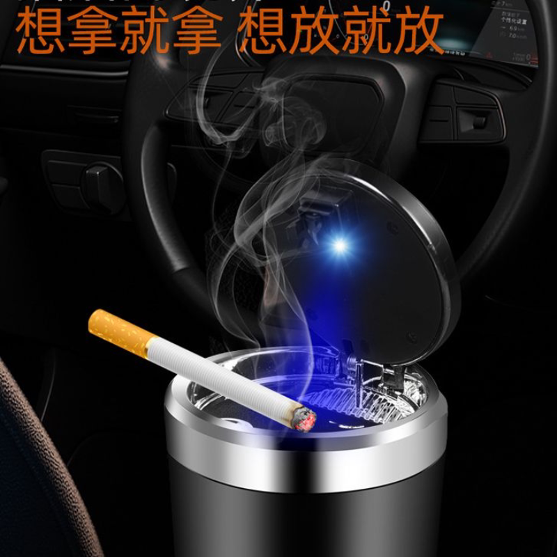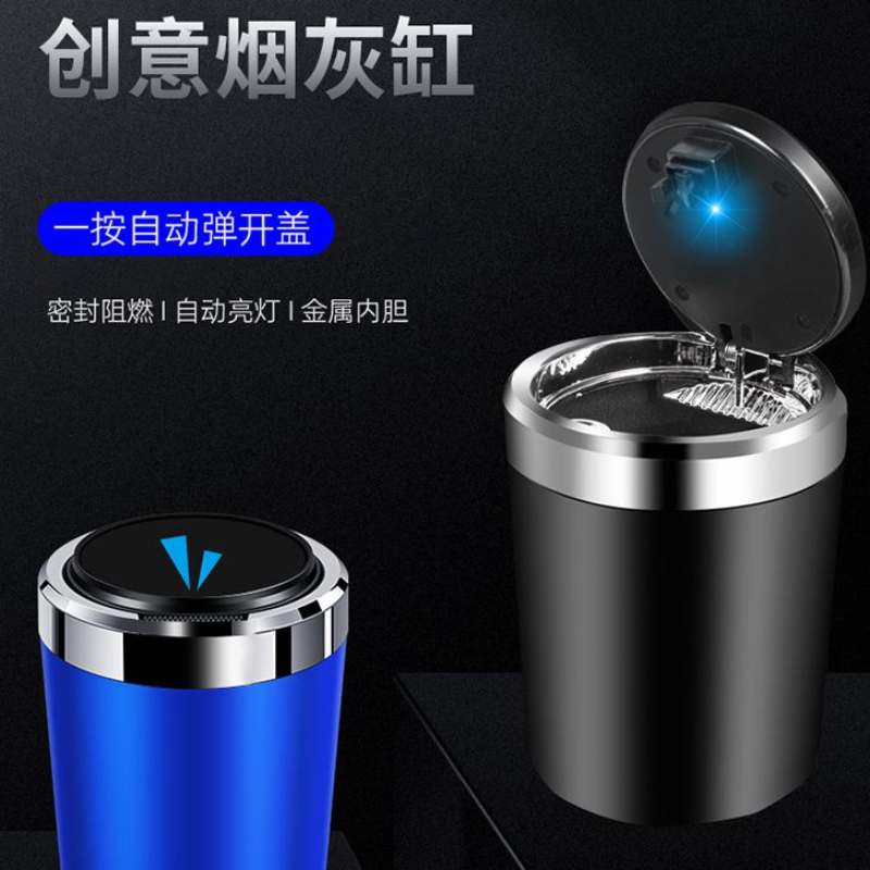 车载烟灰缸金属内胆夜光创意车用烟灰缸高阻燃性汽车烟灰缸带灯