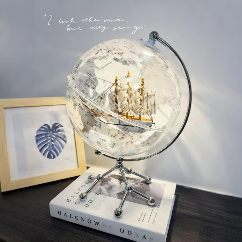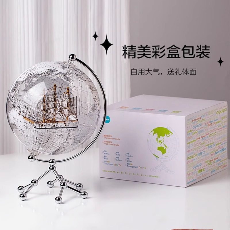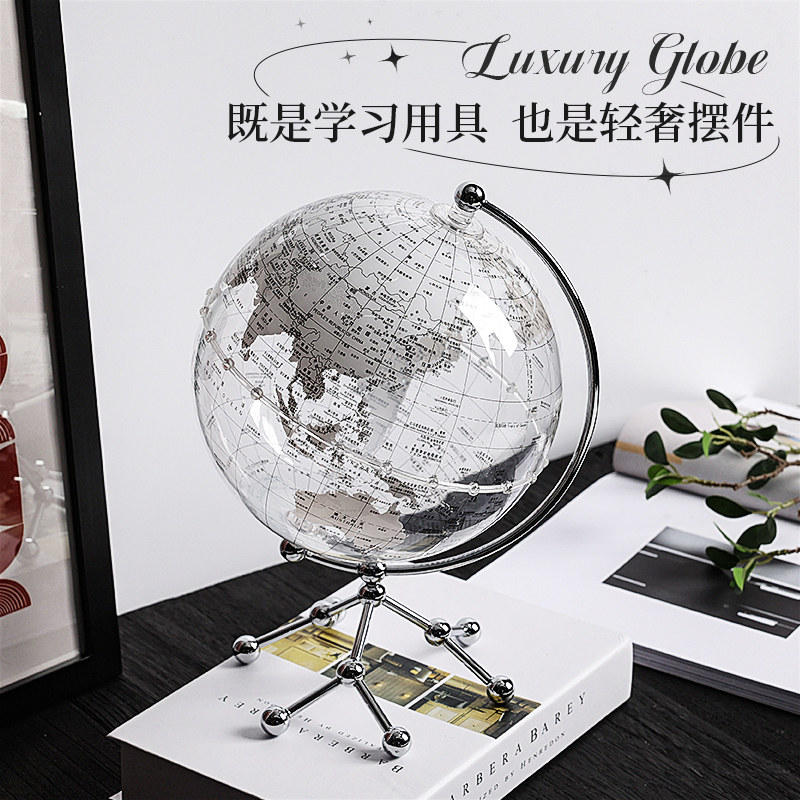 透明地球仪摆件轻奢高档高级感桌面摆设可发光小夜灯台灯家居送礼装饰品大气灯光