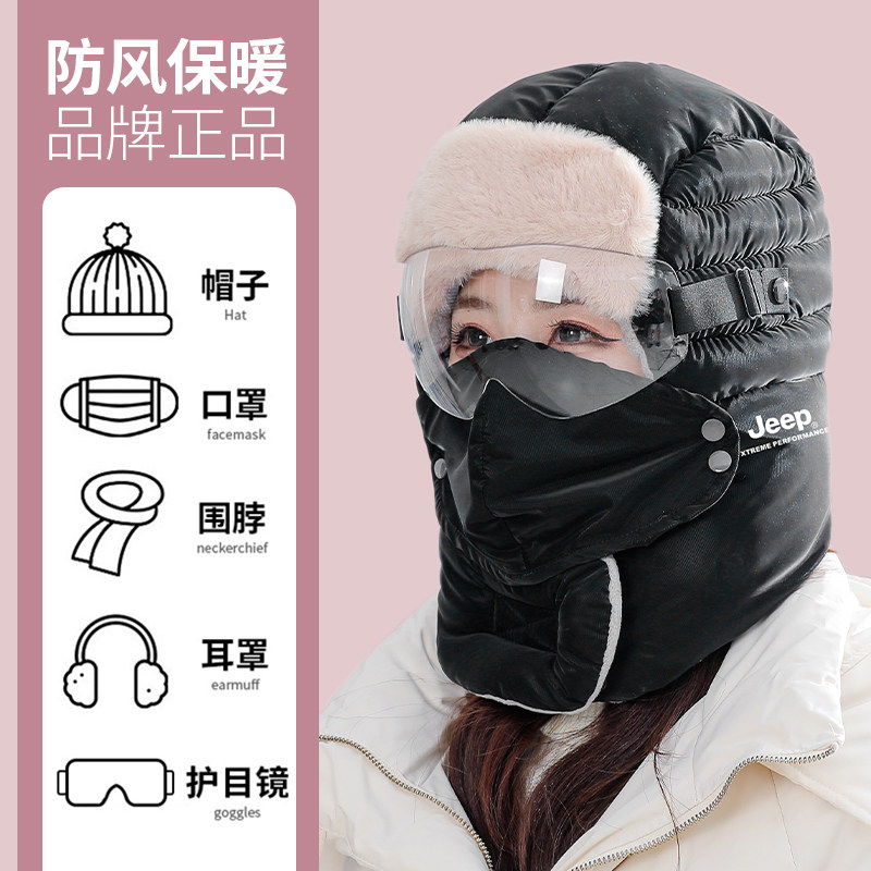 jeep吉普女士冬季雷锋帽骑行保暖加绒加厚电动车保暖神器帽子女冬