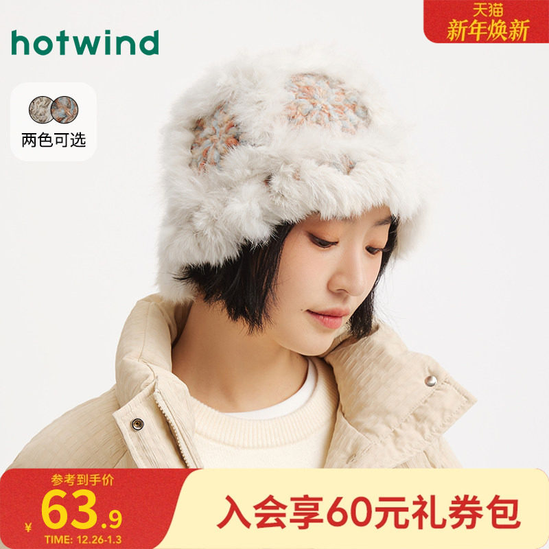 热风女士毛绒帽子2025年冬季新款彩色拼接盆帽保暖御寒显脸小帽子