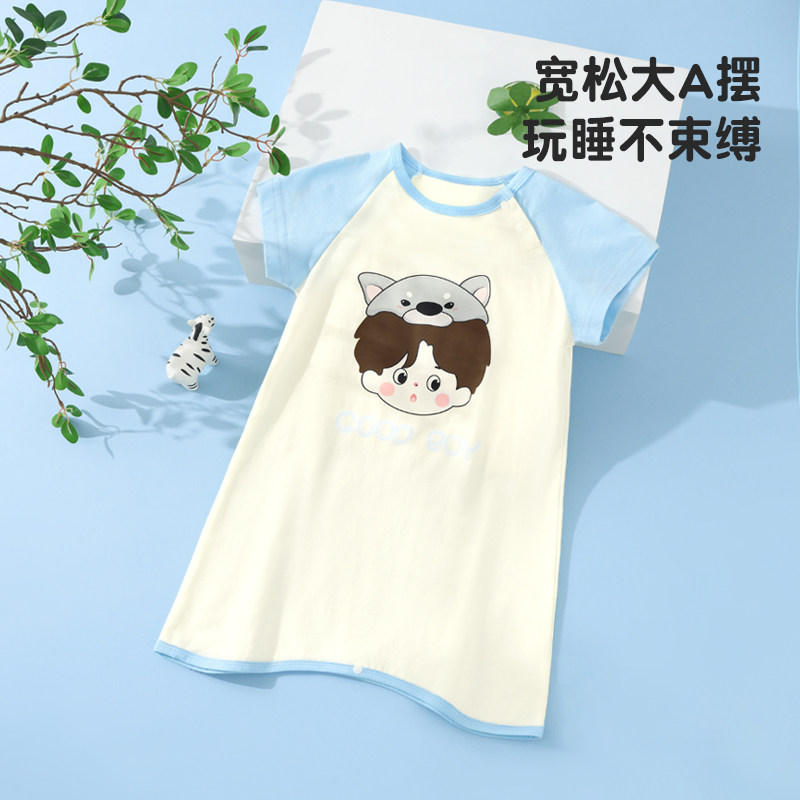 婧麒婴儿睡袍夏季薄款纯棉宝宝防踢被儿童可爱睡裙睡衣儿童家居服
