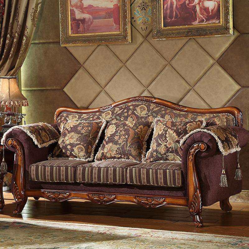 欧式布艺沙发实木雕花美式小户型客厅家用组合原木色123沙发