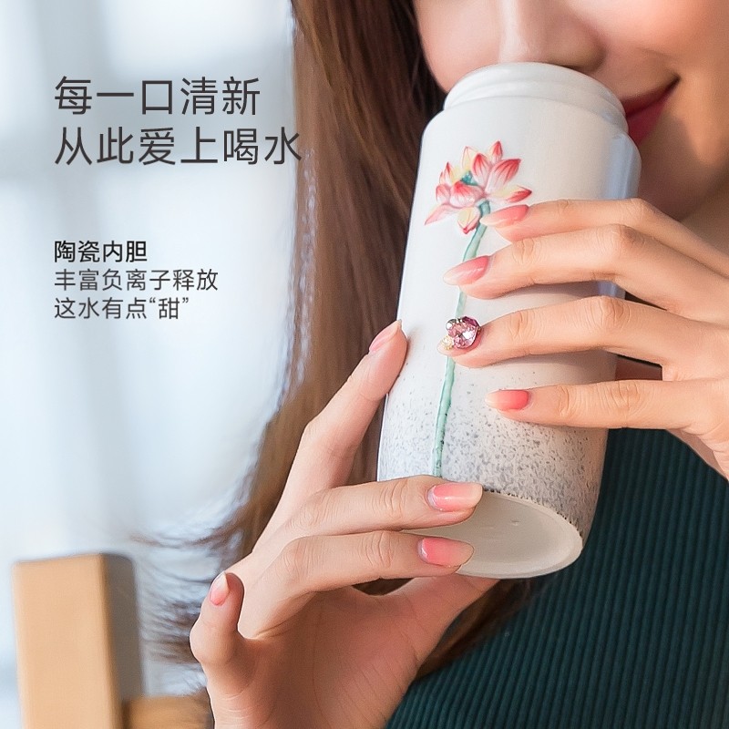 乾唐轩活瓷杯清心福莲随手杯女高颜值水杯陶瓷杯子