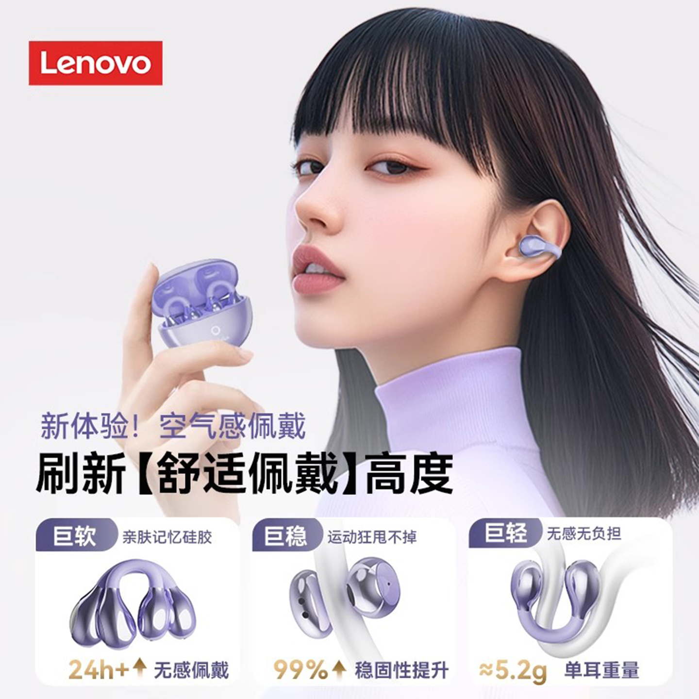 联想耳夹式蓝牙耳机无线骨传导开放式不入耳挂耳运动2025新款男兑