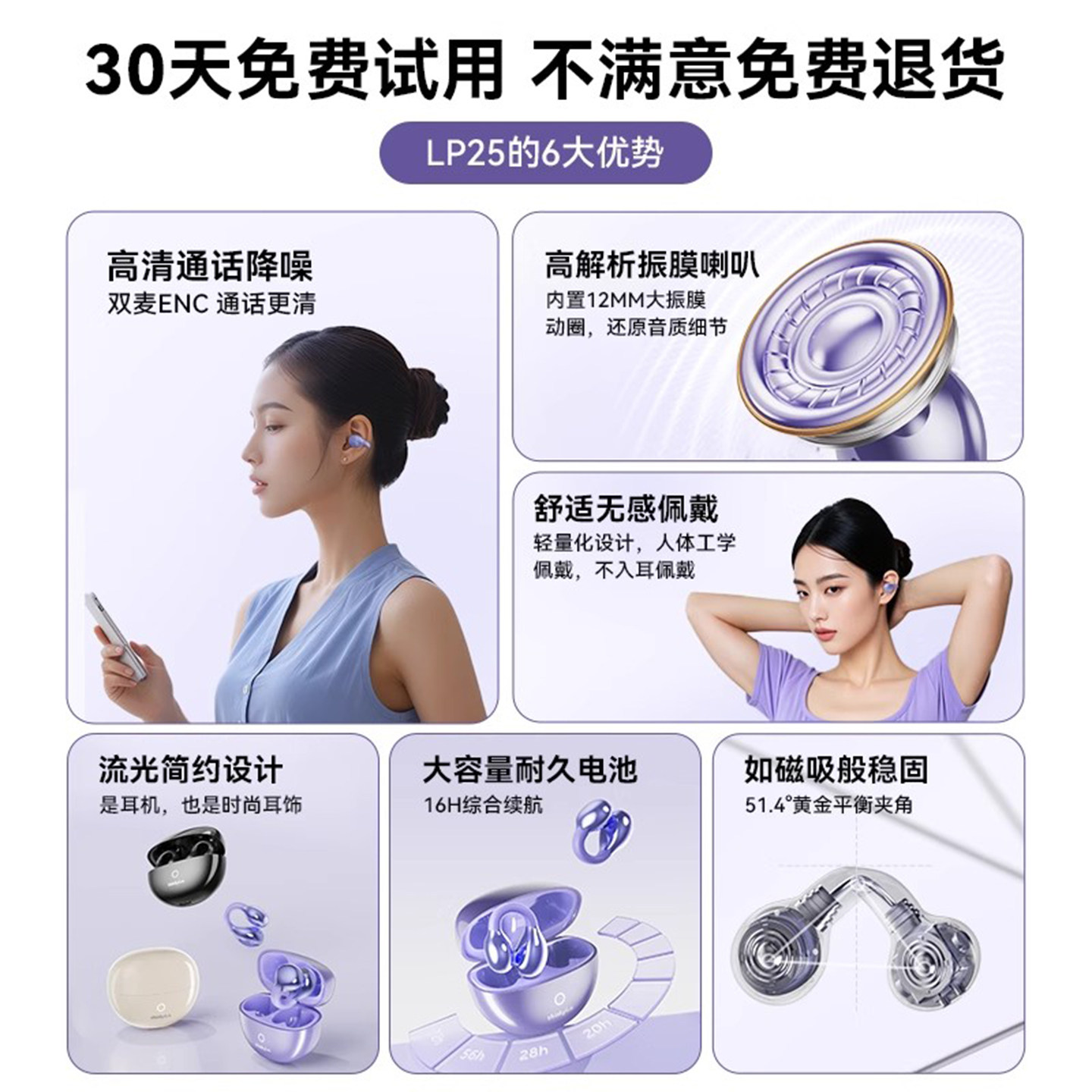 【政府补贴15%】倍思MC1耳夹蓝牙耳机2025新款AI开放式运动跑步