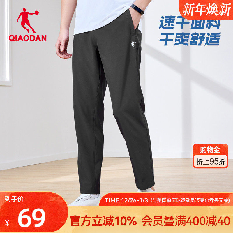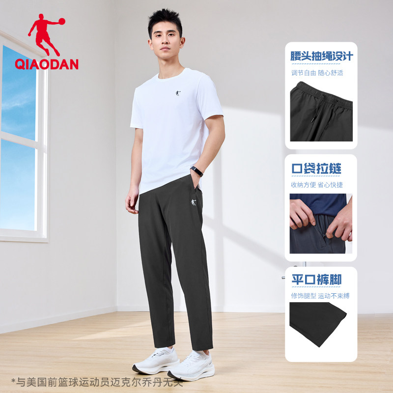 乔丹速干运动长裤男2025夏季新款速干弹力跑步透气梭织直筒裤子