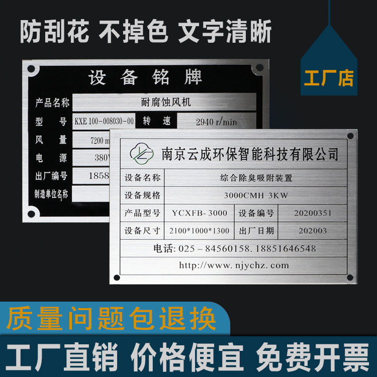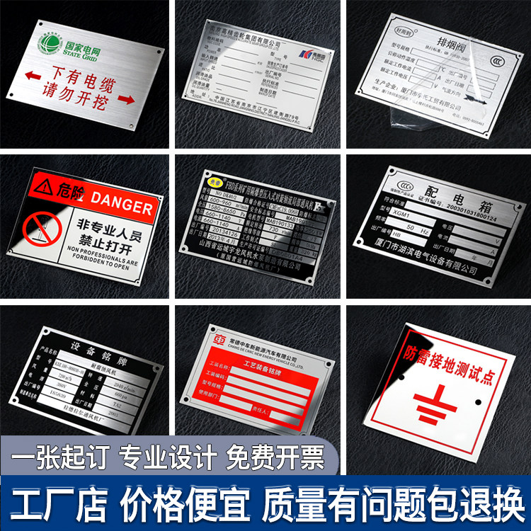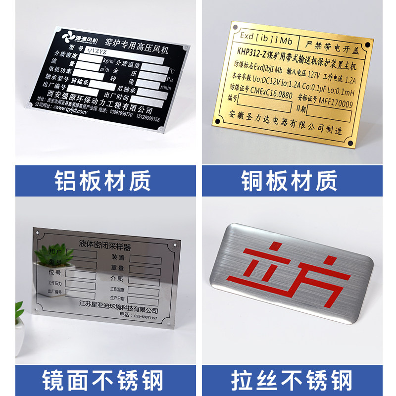 金属铭牌定制不锈钢铝制作腐蚀机器电机设备机床械面板电缆标识模具公司商标logo丝印刷标牌激光雕刻刻字定做
