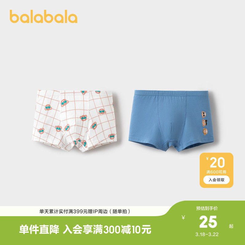 巴拉巴拉男童内裤平角儿童四角短裤宝宝抑菌裆两条装舒适柔软萌趣
