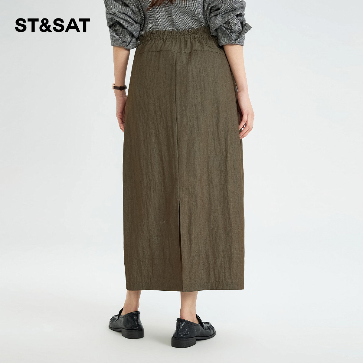 星期六百搭气质花苞裙女2026春季新优雅简约休闲通勤后开叉半身裙