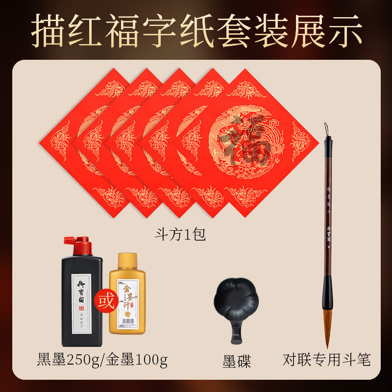 2026年马年新款描红福字纸儿童自写套装对联专用纸万年红洒金斗方临摹写福字的红纸手写书法春联作品红色宣纸