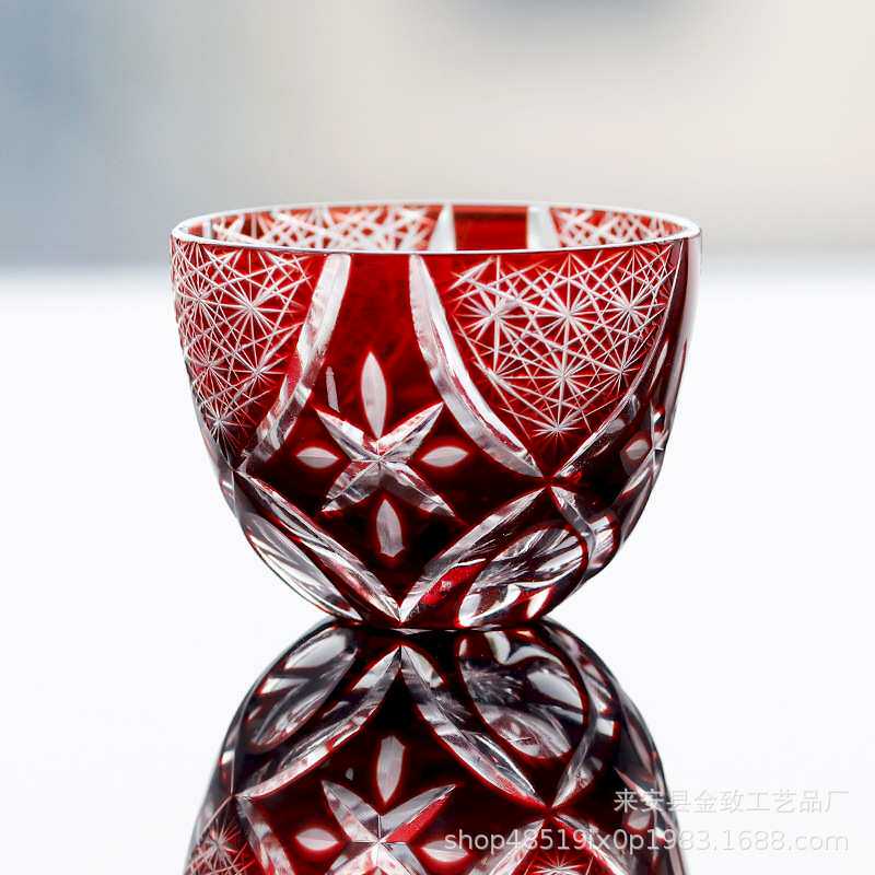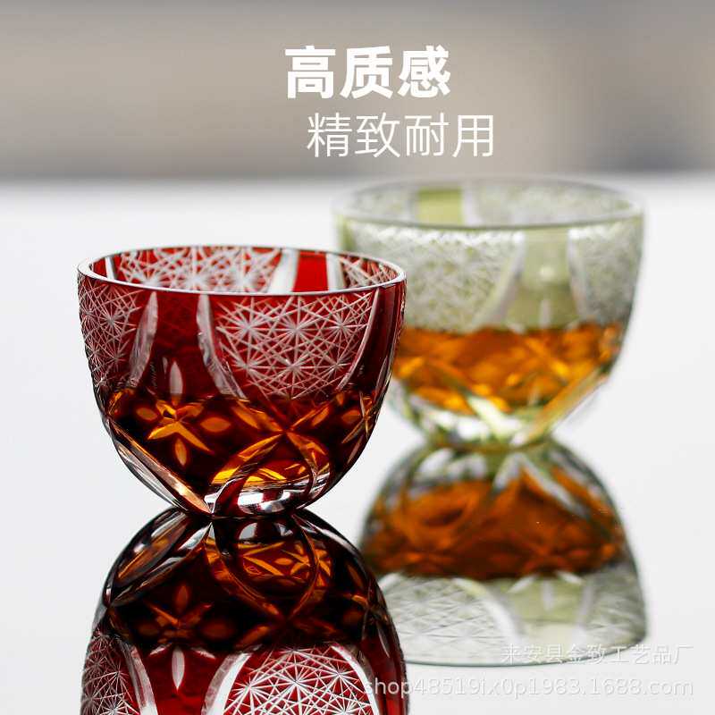 日式江户切子手工雕刻水晶玻璃威士忌杯硝子料理清酒杯工厂直销