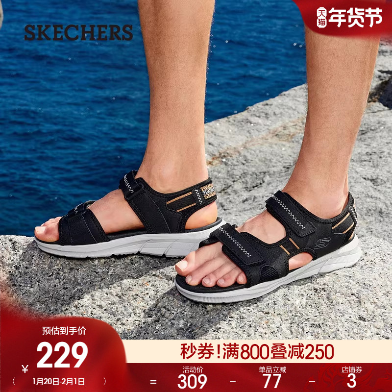 Skechers斯凯奇男鞋沙滩凉鞋户外休闲鞋软底魔术贴外穿拖鞋夏季