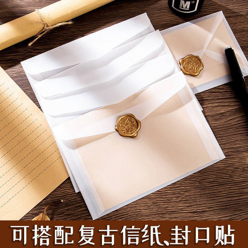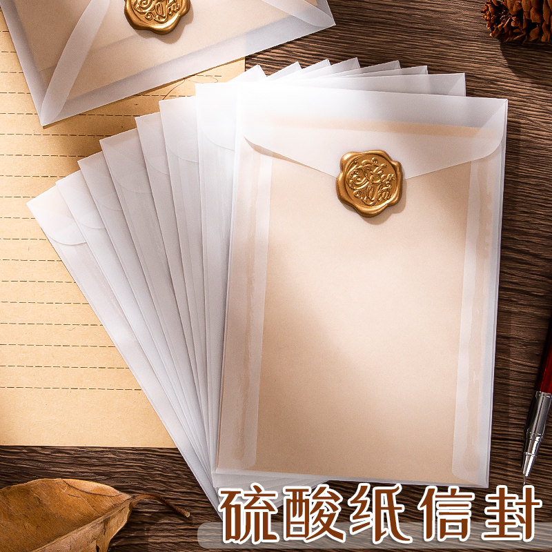 硫酸纸信封半透明磨砂高颜值ins风出卡打包袋复古欧西式横版正方形大号小卡明信片手账贴纸包装袋防水高级感