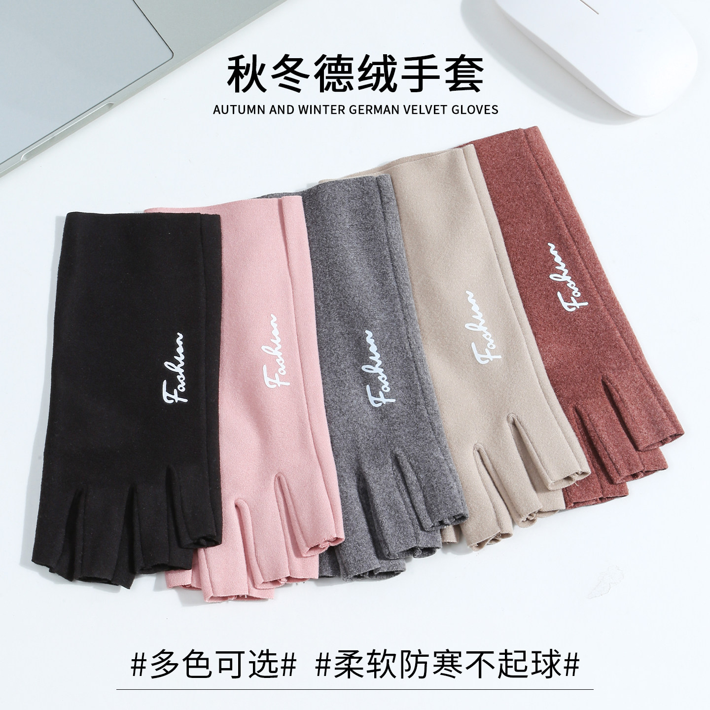 露二指骑行手套保暖冬季触屏韩版毛绒防寒漏指骑车办公写字神器