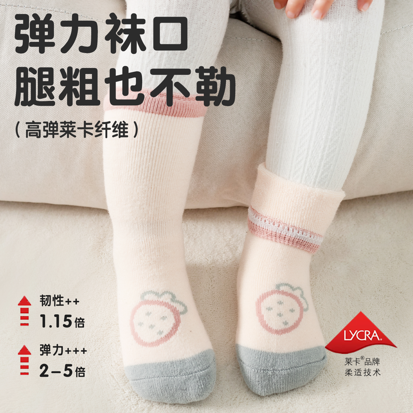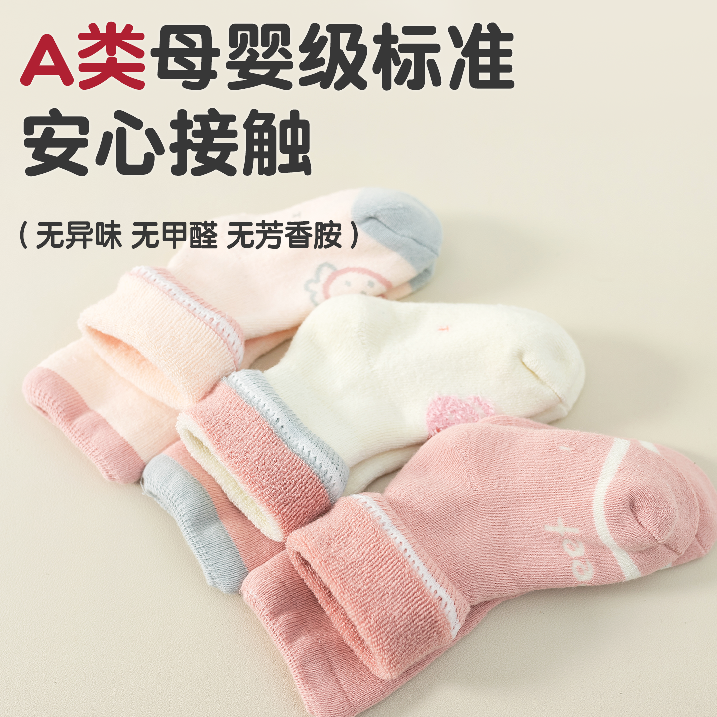 秋冬保暖婴儿袜子加厚中筒袜a类棉袜0到3个月女宝宝袜子不勒腿