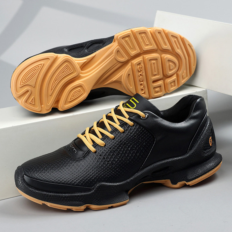 热销爆款高品质头层牛皮户外减震男士运动跑步鞋轻便休闲黑色