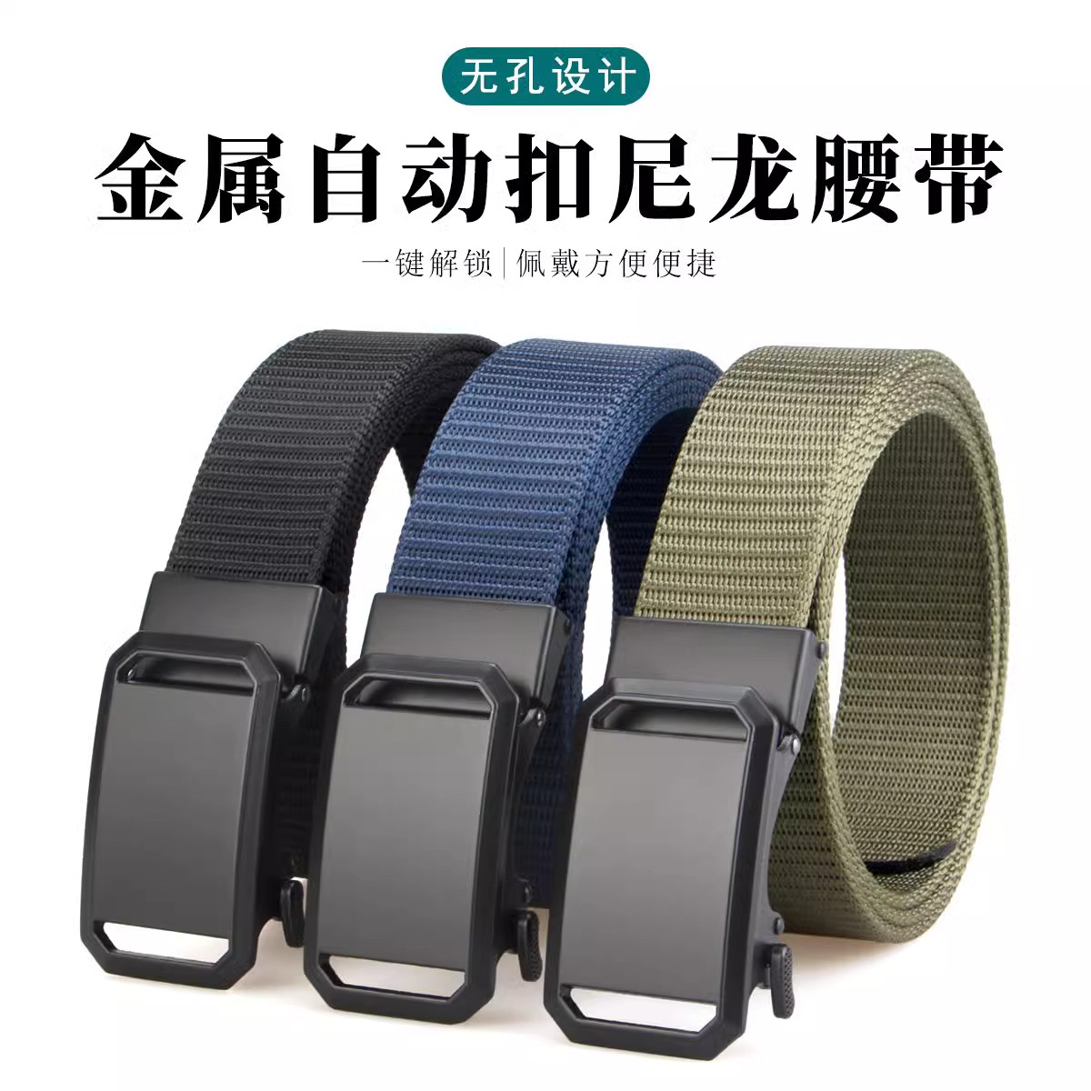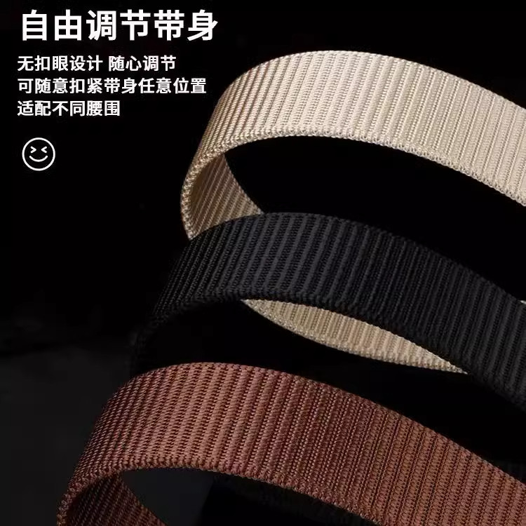 2024新款男士帆布尼龙皮带无孔自动扣帆布腰带轻便超轻薄耐用男款