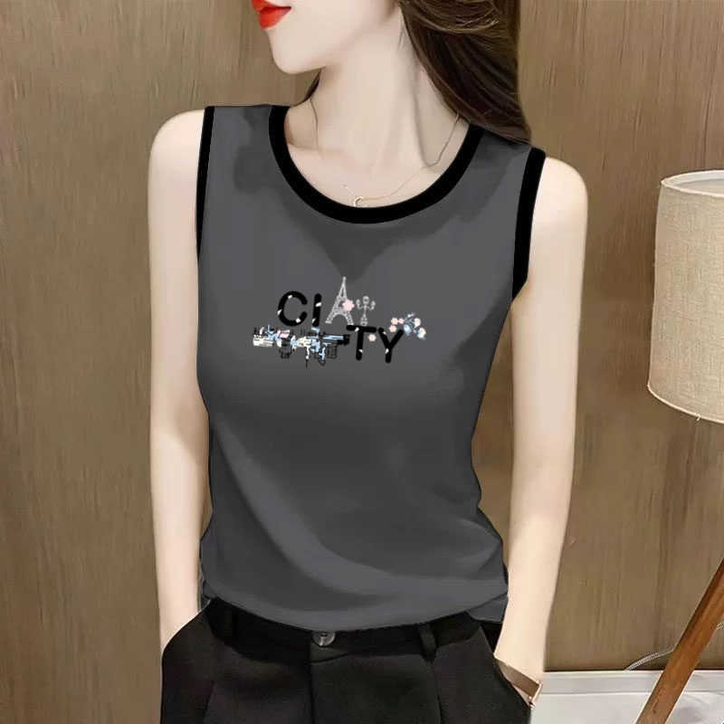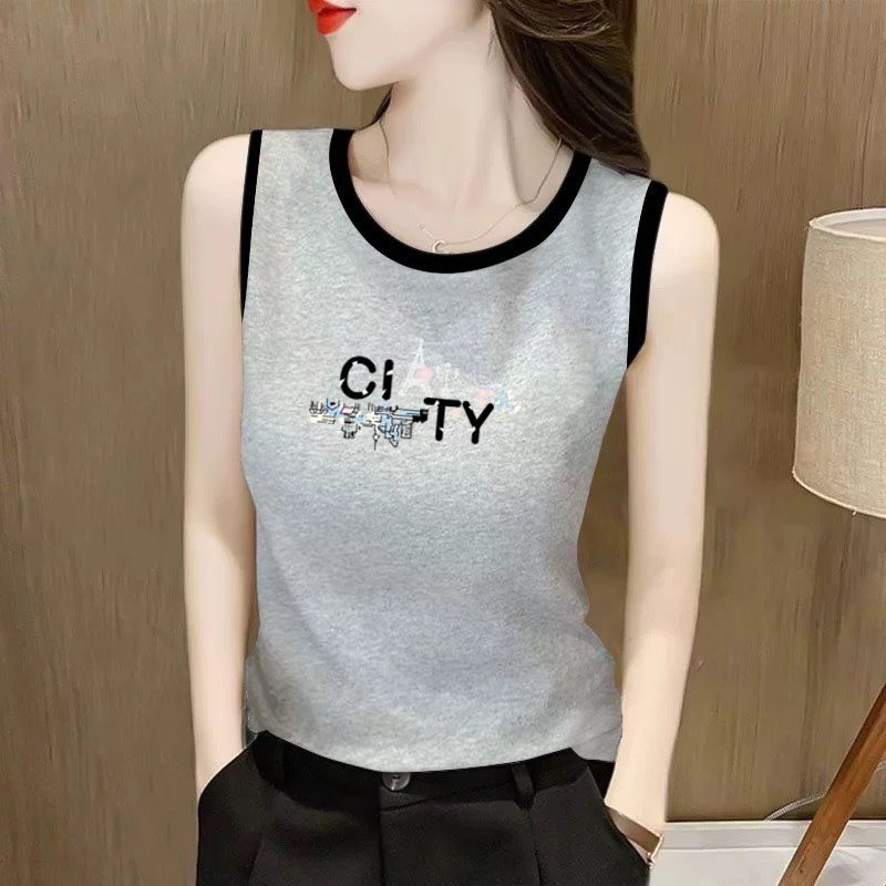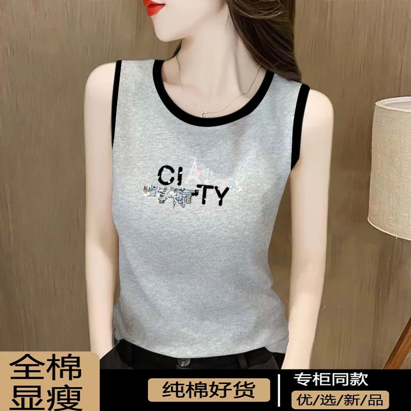 外贸折扣女装纯棉吊带背心女夏新款时尚印花宽松内搭百搭T恤上衣