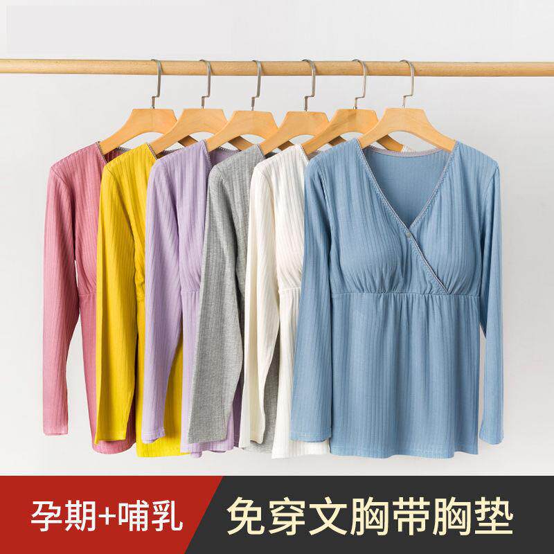 单件上衣/春秋款月子服长袖纯棉哺乳衣喂奶衣产后秋衣秋裤棉毛衫