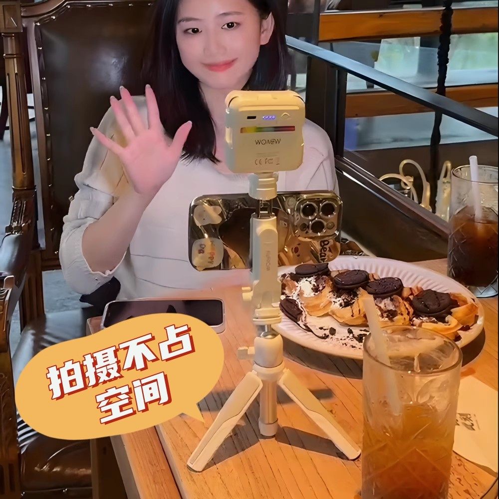 wonew七彩蜗牛张雅琪同款手机支架自拍杆Vlog拍摄三脚架手机支架带补光灯拍照专用神器迷你便携直播桌面支架