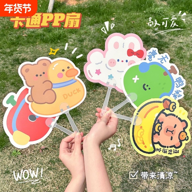 可爱卡通迷你小扇子女夏天儿童学生长柄扇夏季便携随身塑料手摇扇