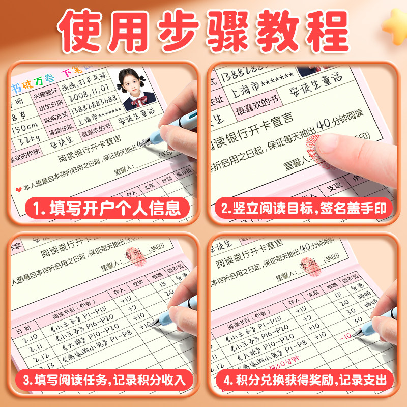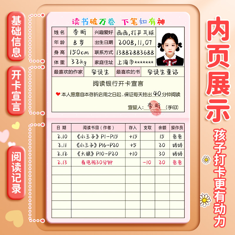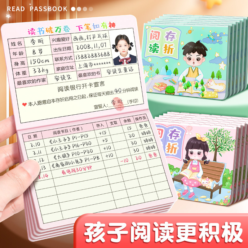 阅读存折本记录卡读书儿童心愿存折学习幼儿园少儿存折成长存折教学奖励用读书存折读书笔记奖励积分卡登记册