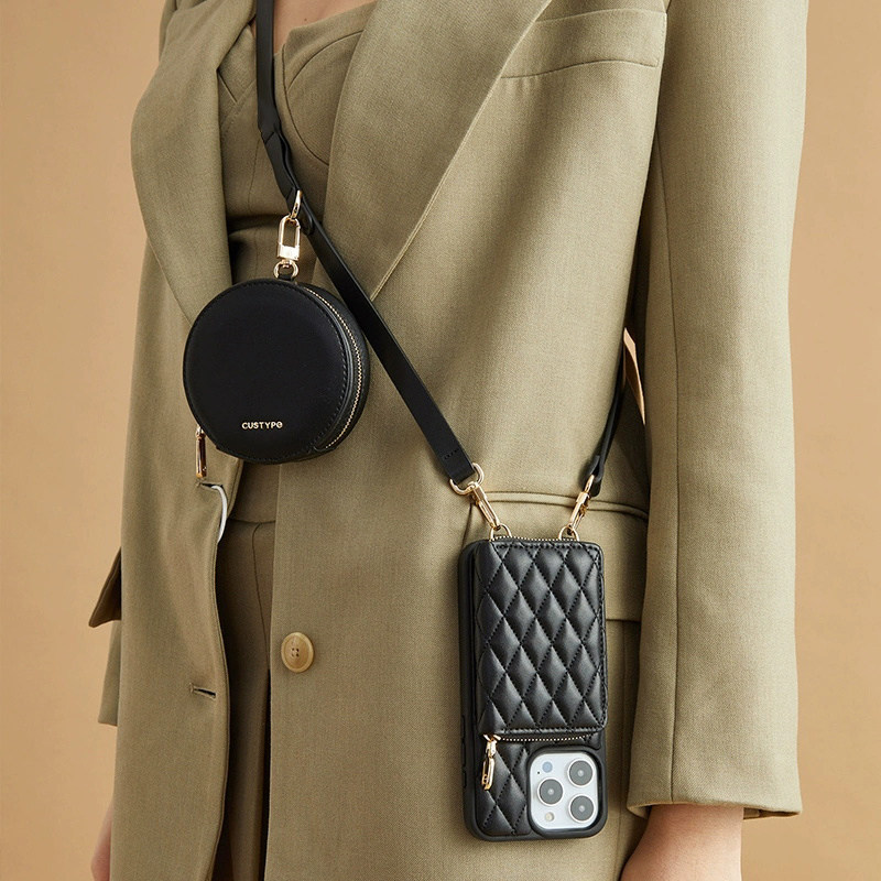 Custype菱格手机壳斜跨包适用苹果17promax手机壳斜挎带零钱卡包iPhone16pro便携式保护壳小香风爆款手机套
