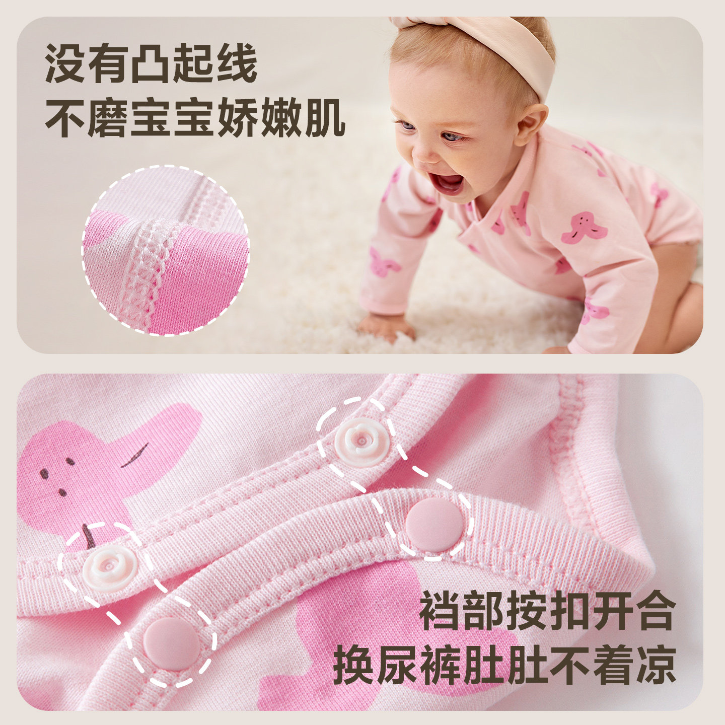babycare冬季保暖山茶花连体衣宝宝包屁衣新生儿爬服外出婴儿衣服
