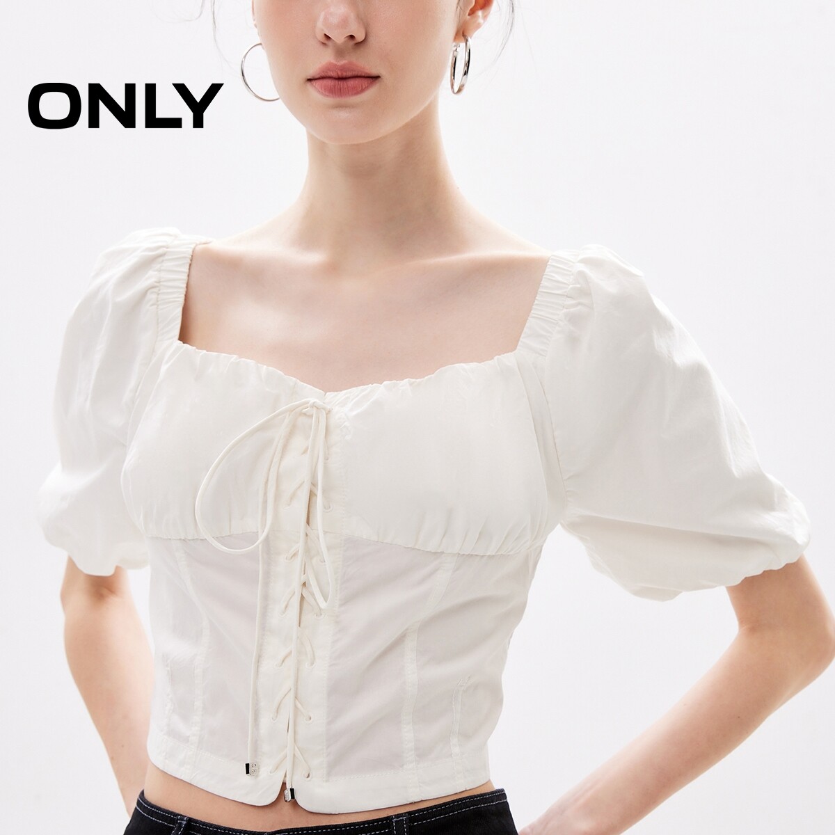 【ONLY奥莱】春夏新款法式复古宫廷风泡泡袖方领雪纺衫女