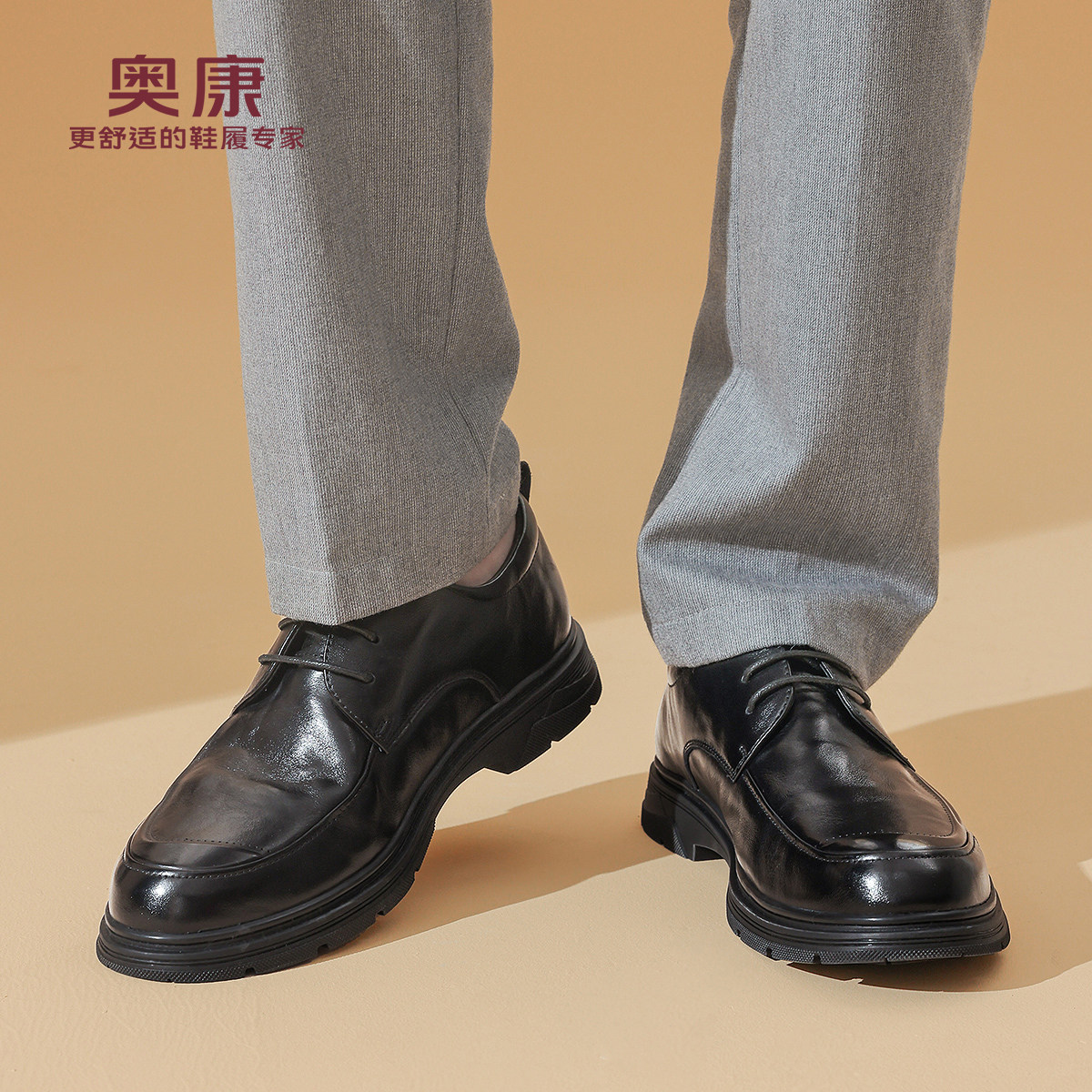 【内增高】奥康男鞋春秋季新款商务德比鞋男真皮舒适通勤男士皮鞋
