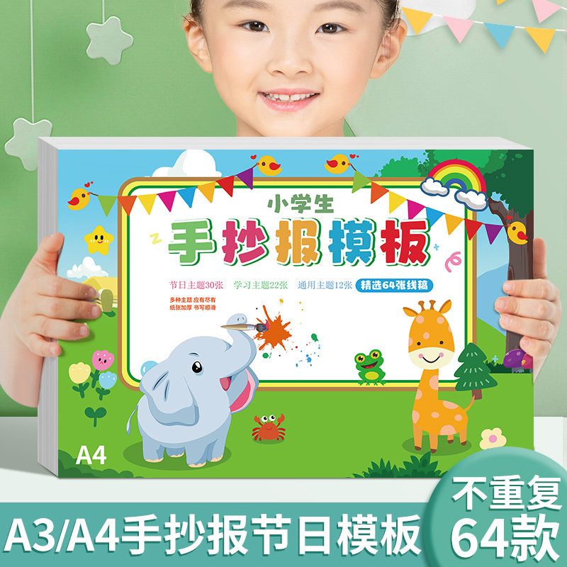 a3小学生手抄报模板大全半成品国庆节一年级绘画图案临摹神器儿童专用纸8k万能节日画画镂空中秋节a4线稿图