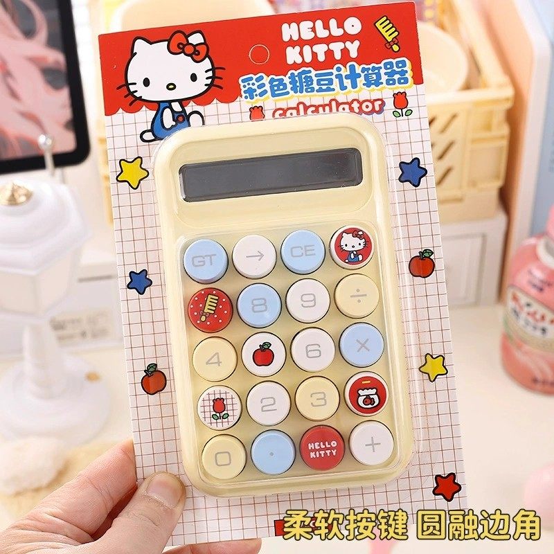 正版凯蒂猫彩色糖豆计算器超可爱按键卡通多巴胺计算机学习小学生办公用儿童女生款高颜值小型静音便携少女心