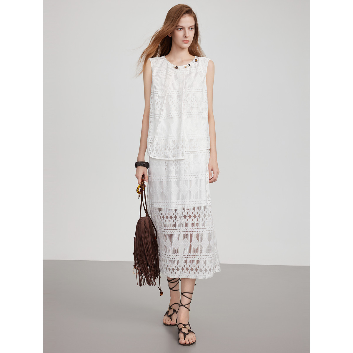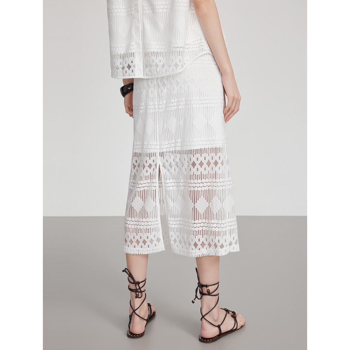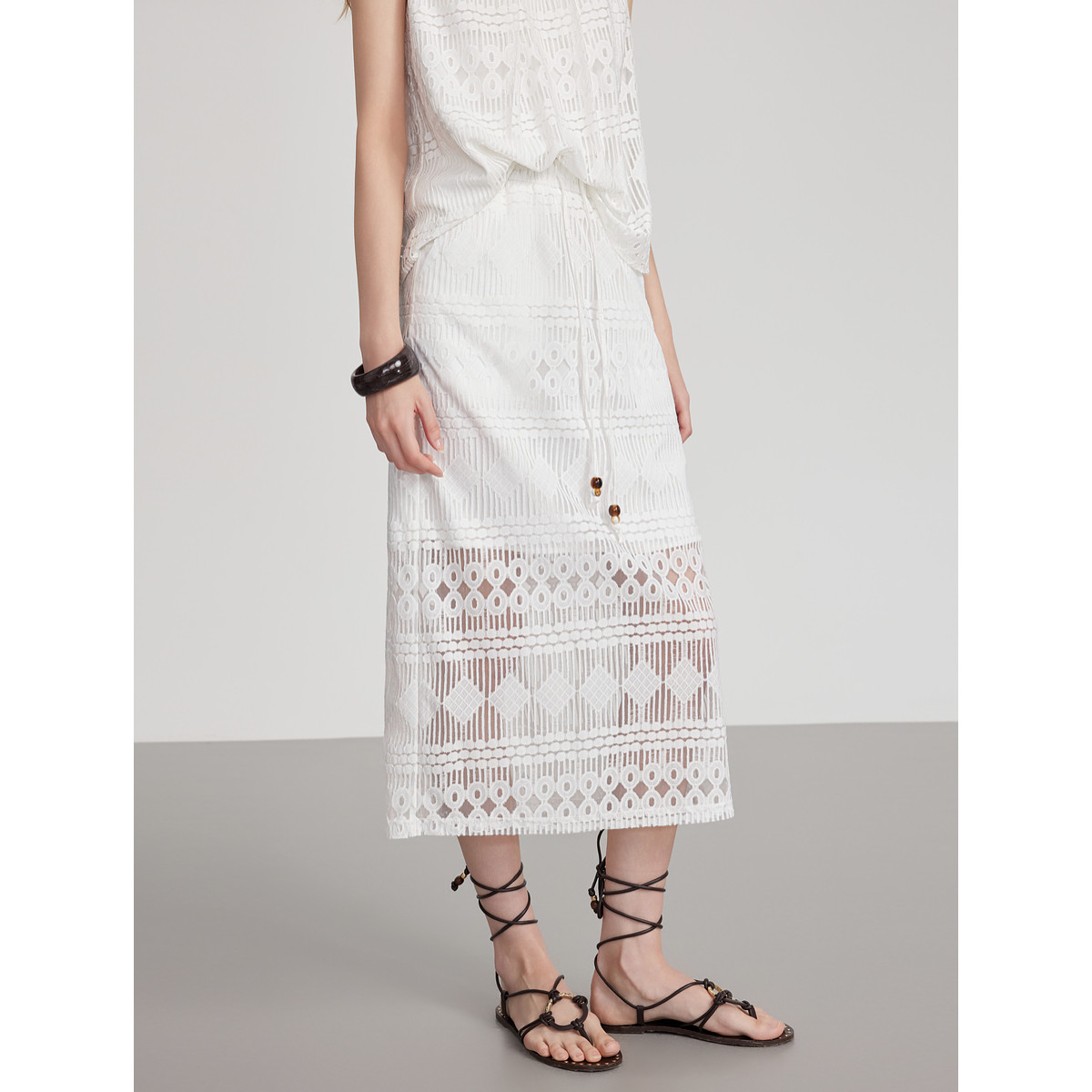 ELLE白色镂空绣花度假风半身裙女2025夏季新款波嬉开叉气质一步裙