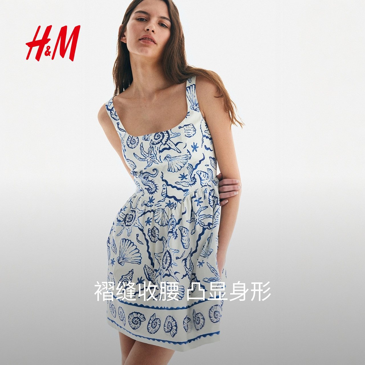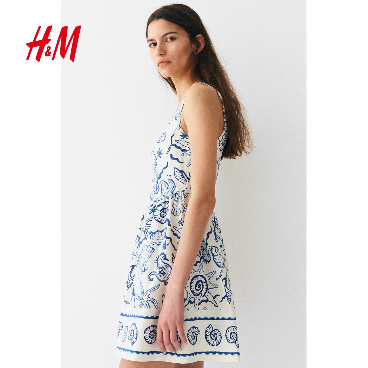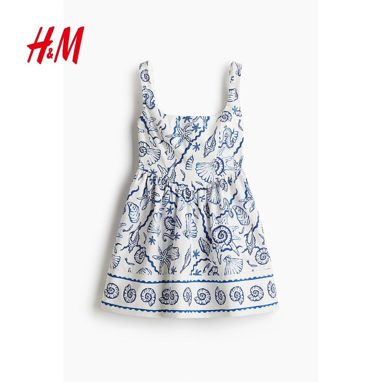 HM女装连衣裙25冬新款露背方领度假印花吊带设计感碎花裙1273504