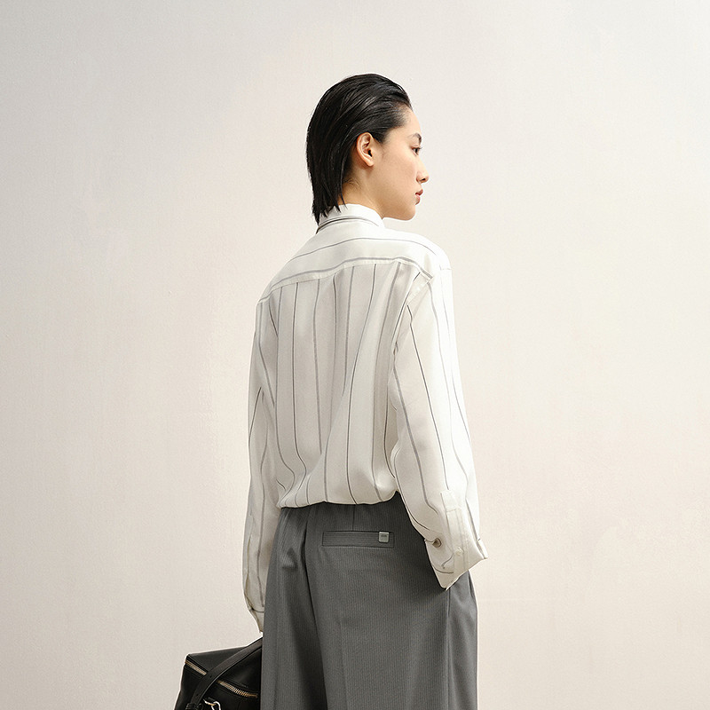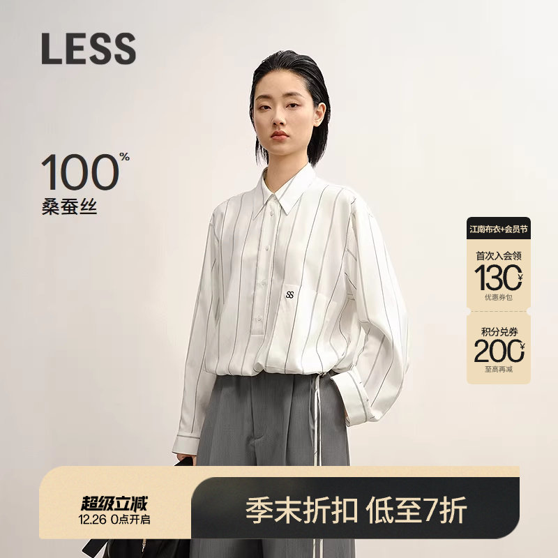 【商场同款】LESS2025年秋新款通勤桑蚕真丝条纹衬衣女2P7218510