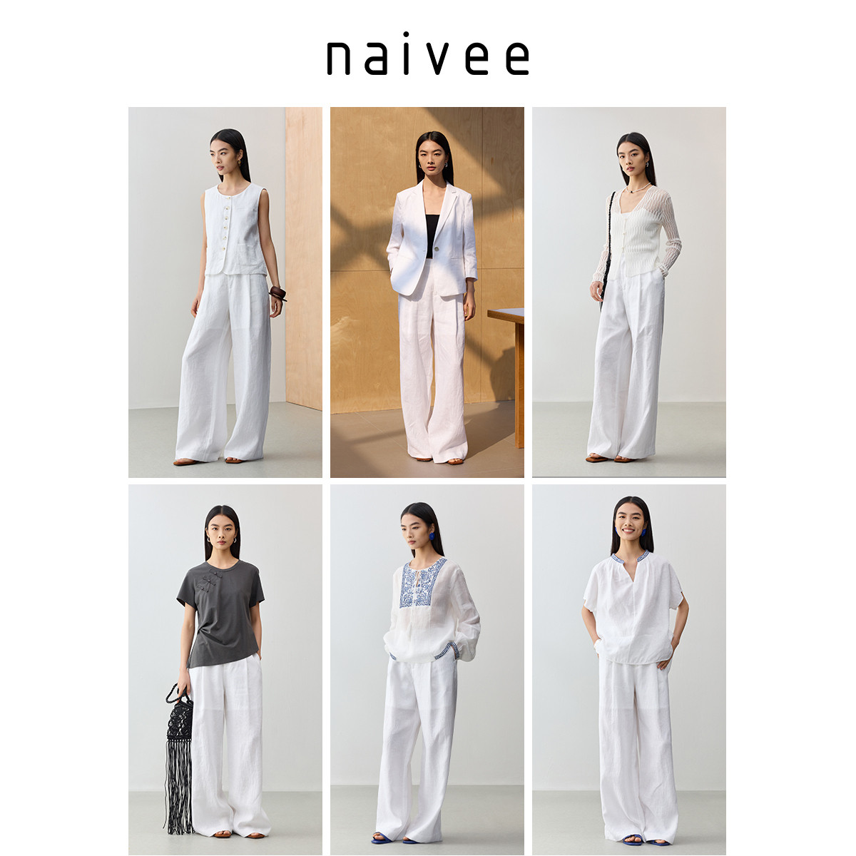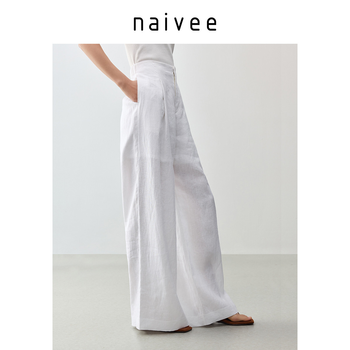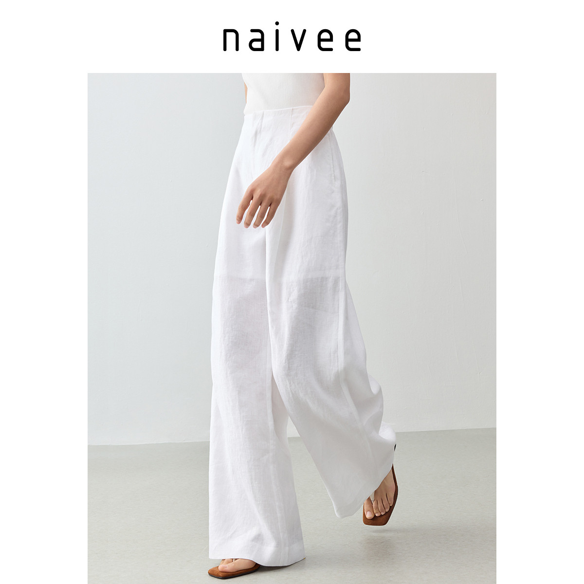 【100%水洗亚麻】naivee纳薇25秋新款老钱风阔腿裤透气白色休闲裤