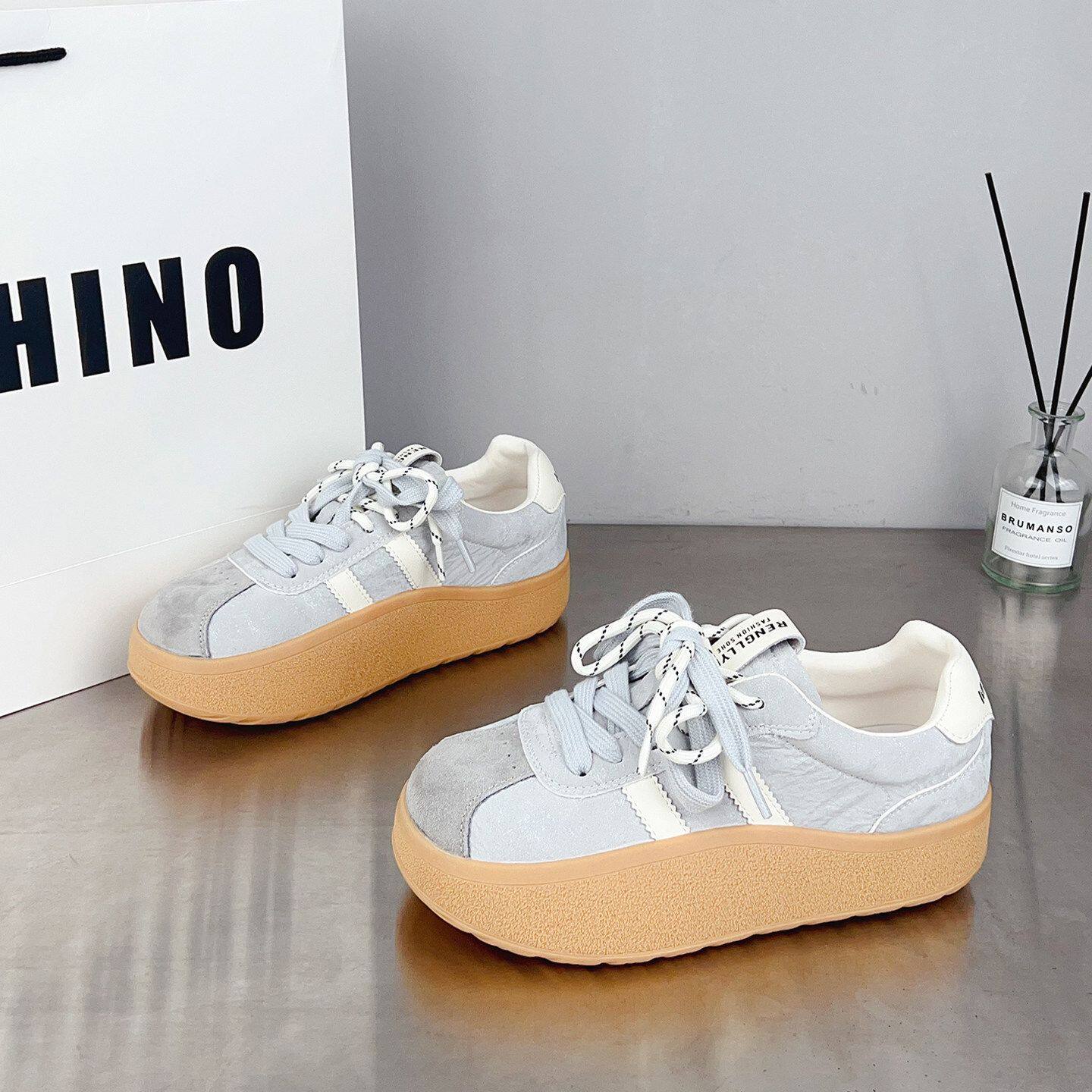 真皮~骄屿内增高芭蕾德训鞋女新款复古百搭休闲阿甘鞋厚底运动鞋